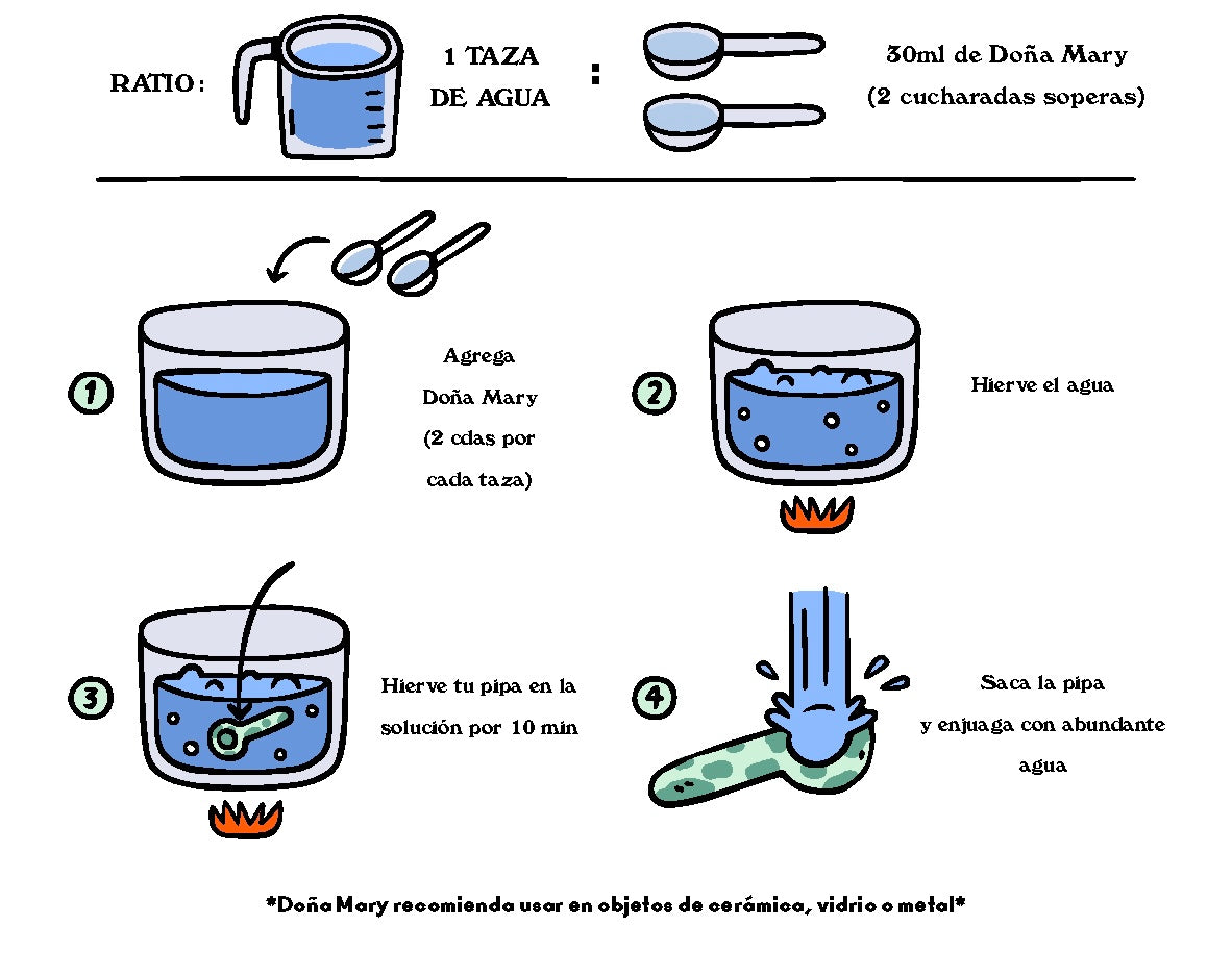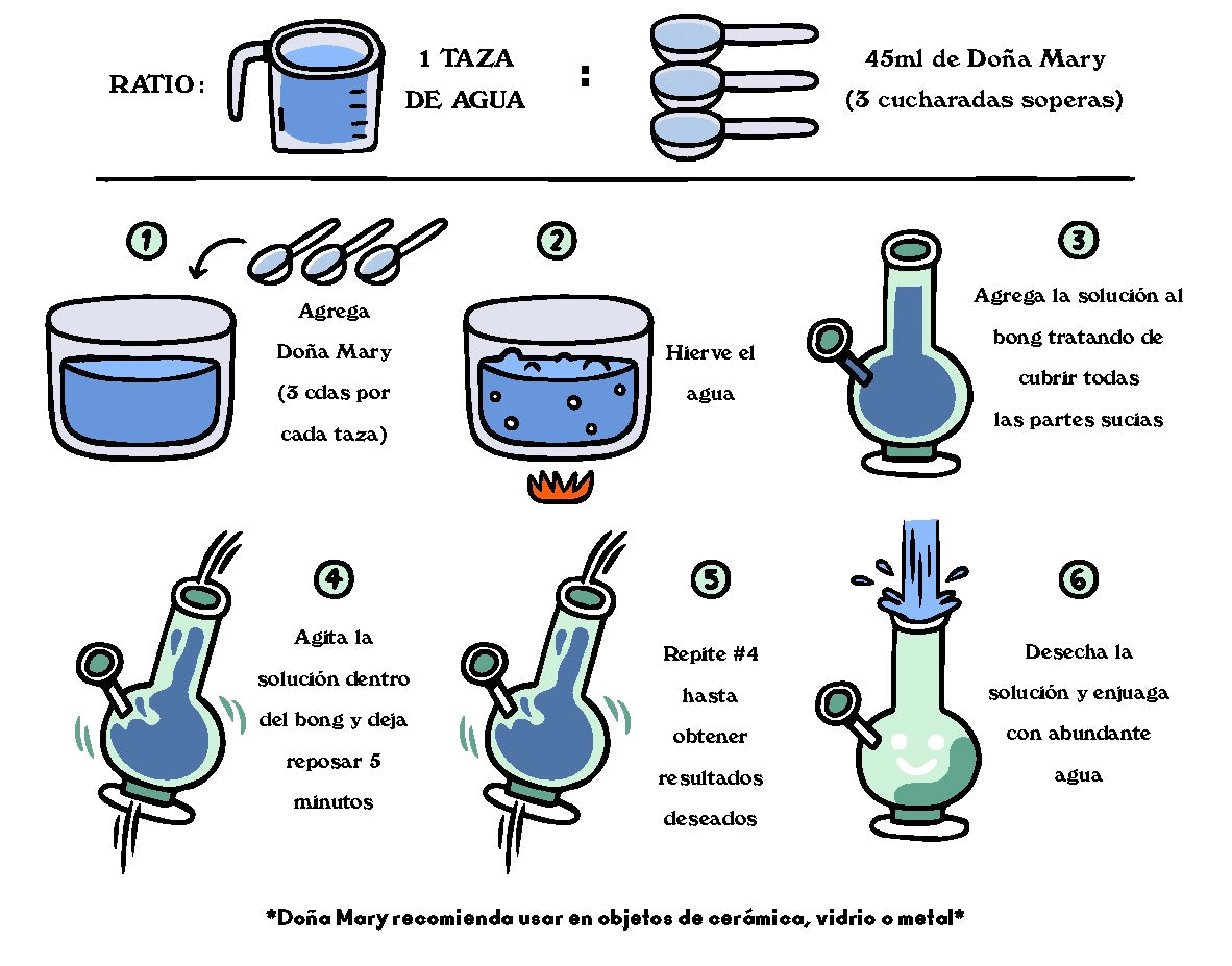 El jabón está diseñado para arrancar toda la resina de tu pipa. La Doña recomienda usar en vidrio, metal o cerámica.